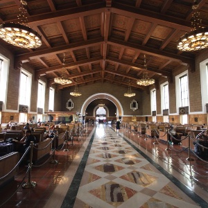 Erst waren wir Frühstücken in der Bottega Louie (richtig nettes Restaurant, das sogar Chai-Latte auf der Karte hatte). Dann ging es zur U-Bahn. Doch wie verdammt funktioniert das mit den Tickets?! Aber wir sind ja im Ami-Land, und so sah wohl eine Reinigungskraft aus der U-Bahn unser „?“ im Gesicht und erledigte das für uns. Auf ging es zur Union Station, dem alten Bahnhof von L.A., welchen man auch aus vielen Filmen kennt. Sehr beeindruckend! Dann machten wir noch einen Abstecher ins mexikanische Dorf (El Pueblo), dem Ursprung von Los Angeles. Dort unterhielt ich mich spontan mit einen alten Mexikaner der gemütlich auf einer Bank saß und vor sich hin pfiff („span-lisch“ – ein Gemisch aus Spanisch und Englisch war angesagt). Erst als Jan und ich schon wieder unterwegs waren, fiel uns auf, dass wir weder den Namen noch ein Foto von diesem netten alten Heeren hatten. Schade!