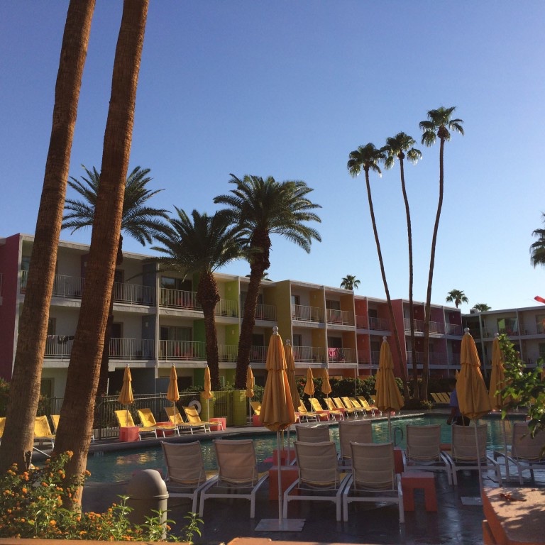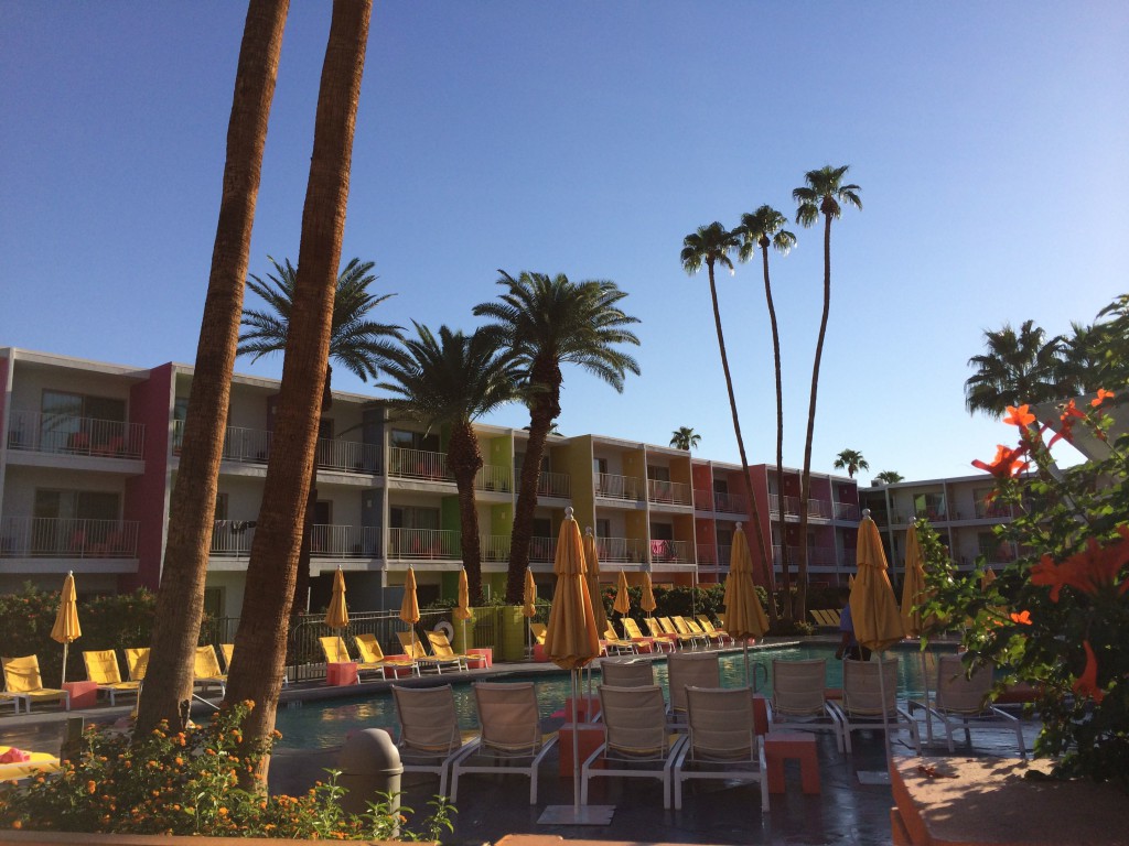 Der Rest der Fahrt war dann eher unspektakulär. Gegen 18 Uhr kamen wir in Palm Springs an und bezogen fix unser Zimmer. Als wir noch einmal am Pool vorbeischauten, flatterte plötzlich etwas sehr hektisch über unsere Köpfe hinweg um dann sofort wieder zu verschwinden. Wir dachten zunächst es wären Fledermäuse. Jedoch weit gefehlt. An einer Blüte machte das Flugobjekt halt und wir erkannten, dass es sich um einen Kolibri handelte! Danach sind wir nach Downtown gefahren, um etwas zu Essen. Überrascht stellten wir fest, dass so gut wie nichts los war. Den Amis ist es hier in dieser Jahreszeit einfach zu heiß. Viele Restaurants oder Läden hatten daher gar nicht geöffnet. Wir hatten aber Glück und fanden ein sehr schönes mexikanisches Restaurant mit Live-Musik. Nachdem man uns den Platz zugewiesen hatte (in den USA lässt man sich immer zum Tisch bringen), bekamen wir sofort ein Glas Wasser und Tortilla-Chips mit Dip, welche sogar laufend nachgefüllt wurden – und das for free. Ich habe mich ganz klassisch für Quesadila entschieden während Rike Chicken-Tacos mit Reis und Bohnenmus hatte. Beides hat fantastisch geschmeckt… kein Vergleich zu El Paso oder Santa Fe.
