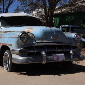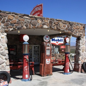 Der erste Zwischenstop war allerdings Seligman – die Geburtsstätte der berühmten Route 66. Als wir hier ankamen, trauten wir unseren Augen nicht: Überall Busse und Touristen. Das ging etwas auf den Charme des ansonsten urigen, kleinen Ortes. Hier reihten sich ein Souvenir-Shop nach dem anderen. Auch wir konnten nicht widerstehen, und ließen etwas Geld dort (Cowboy-Hut und ein paar kleine Andenken). Nachdem wir noch ein paar Fotos gemacht haben, ging es dann auch schon wieder weiter.