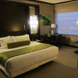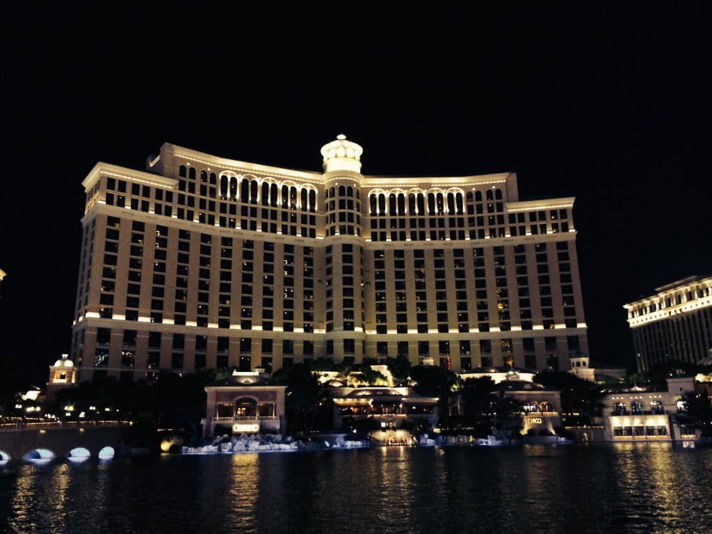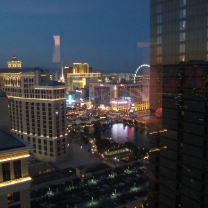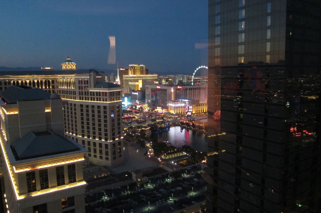 Nun mussten wir nur noch die letzten Meilen nach Las Vegas bewältigen. Dies klappte problemlos und sogar die Anfahrt bis direkt vor unser Hotel lief reibungslos, war aber trotz Navi sehr anspruchsvoll. Nachdem wir unser Auto abgegeben haben sind wir in die Lobby um einzuchecken. Der nette Herr hinter dem Tresen meinte dann, dass wir ein kostenloses Upgrade auf unser Zimmer bekommen. Wir fuhren also in den 40. Stock und schlossen die Zimmertür auf. Was wir dann sahen, ließ uns die Kinnlade runter fallen: Blick über den Strip von Las Vegas inkl. auf die berühmten Fontains des Bellagios. Einfach krass. Und das Zimmer war auch der Hammer: Küche, Sofa, Essecke, Bad mit Wanne und Dusche Riesen-Bett und -Fernseher und automatisch hoch und runter fahrbare Rollos; natürlich alles vom Feinsten. Besser geht es eigentlich nicht (zumindest nicht mit unserem Budget).