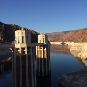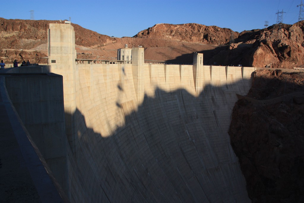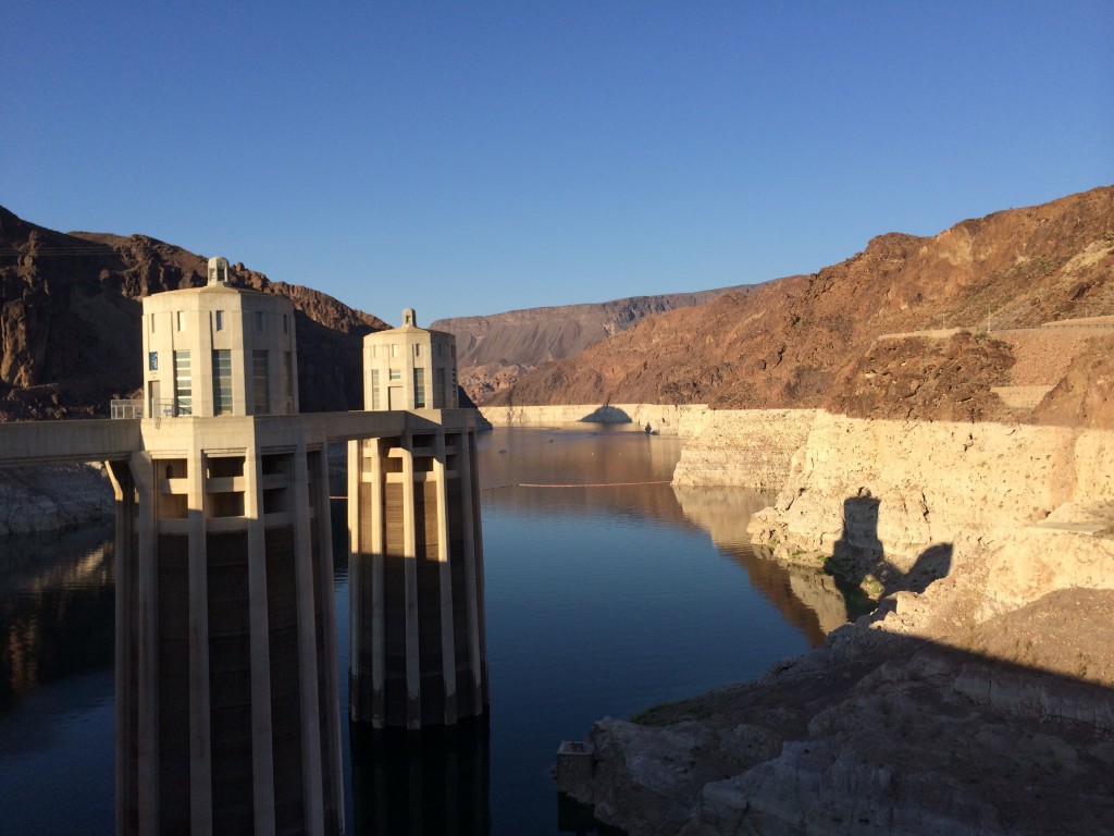 Nun folgten schier endlose Autobahnen durch die Wüste. Irgendwann kamen wir dann aber an der Hoover-Talsperre an. Wir parkten unser Auto und sind einmal über den Damm gegangen um ein paar Fotos zu schießen. Ein beeindruckendes Bauwerk, welches hier mitten in die Berge gebaut worden ist. Was wir nicht wussten ist, dass der Primärzweck der Talsperre nicht die Stromgewinnung ist, sondern die kontrollierte Wasserabgabe in Arizona, Nevada und Kalifornien.