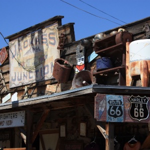 Kurz hinter Kingman sind wir dann auf die Route 66 gefahren und vor uns lag ein wunderschöner Weg durch die Berge von Arizona. Vorbei ging es an Goldminen und alten Stops für Biker.