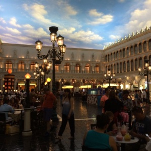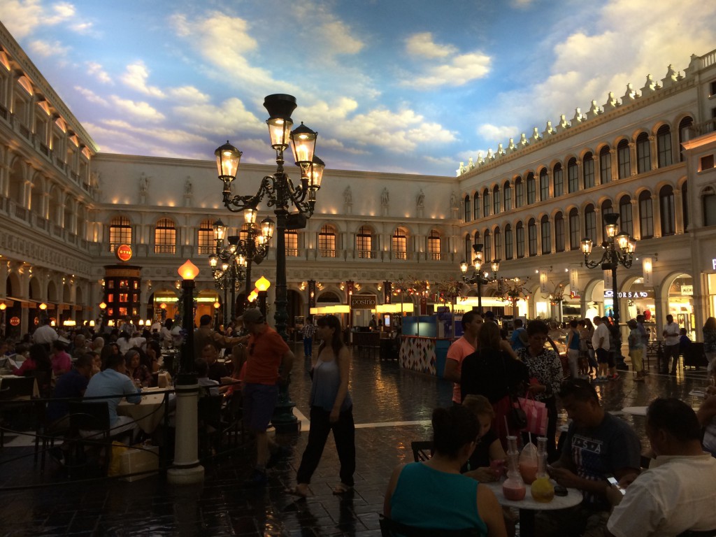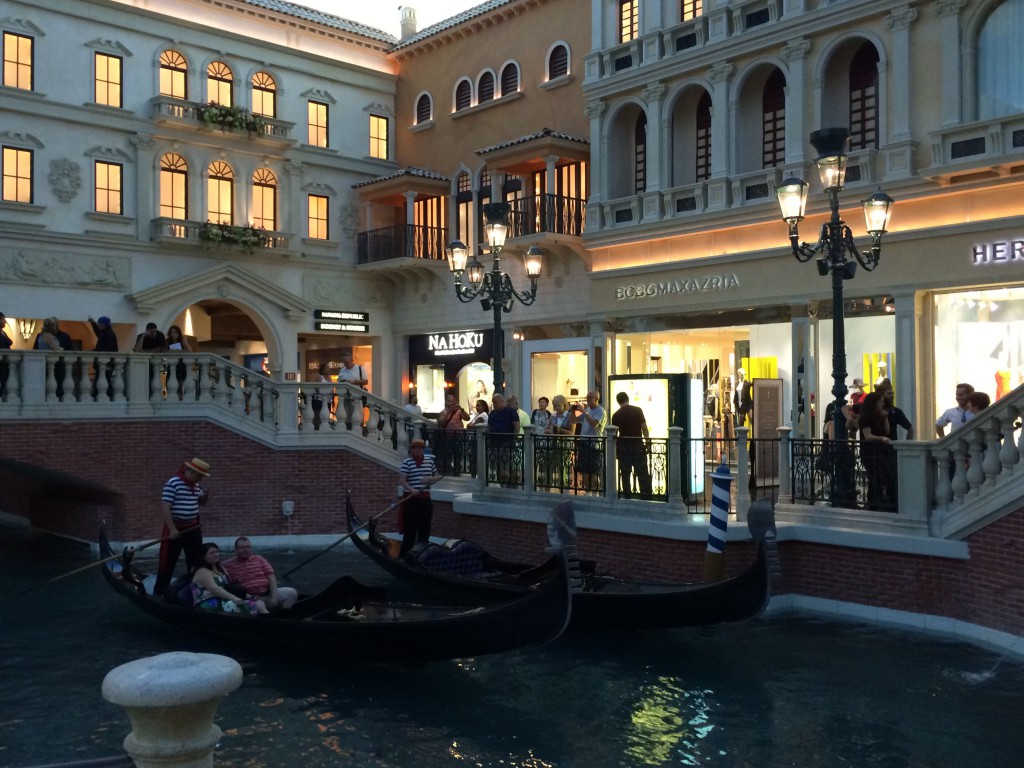 Als nächstes ging es dann mit dem Bus zurück zum Strip. Ausgestiegen sind wir an der Fashion Show, wo wir mal kurz einen Blick reingeworfen haben. Doch auf weitere Luxus-Läden hatten wir keine Lust (davon haben wir am Vortag genug gesehen). Wir entschieden uns, weitere Hotels anzusehen. Kurz einmal durchs Wynn, dann zum Palazzo und danach ins Venetian. Im Letztgenannten wurde Venedig quasi nachgebaut… inklusive der Gondeln. Einfach beeindruckend. Bei einem Kaffee schmiedeten wir dann einen Plan für den Rest des Tages.