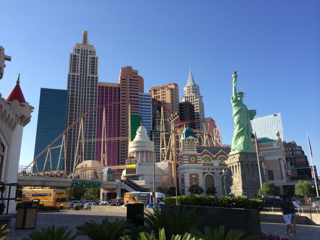 Das nächste Ziel sollte das Sign of Las Vegas sein, doch das verschoben wir spontan auf den nächsten Tag. So gingen wir vorbei am Mandalay Bay (welches aufgrund einer privaten Veranstaltung leider nicht zugänglich war und wir somit auf das Aquarium mit den Haien verzichten mussten), dem Luxor und New York New York zur nächsten Bushaltestelle am MGM um zum Stratosphere-Tower zu fahren, dem höchsten freistehenden Aussichtsturm der Vereinigten Staaten.