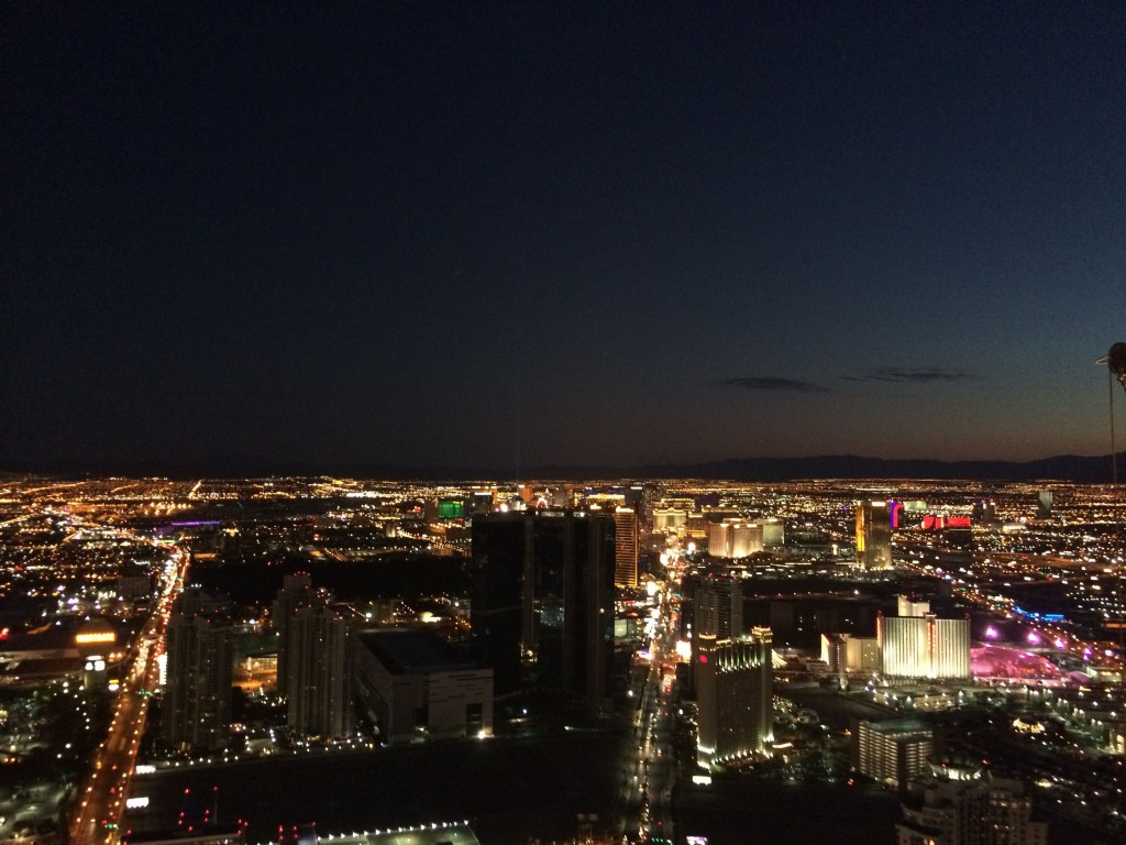 Aus knapp 350m Höhe sahen wir dabei zu, wie die Lichter in Las Vegas die Regie übernahmen. Die Fahrattraktionen, die es hier oben gab, haben wir uns nur angesehen. Die Höhe allein reichte zumindest mir (Jan) schon völlig aus. Für mehr Nervenkitzel hatte ich keinen Bedarf.